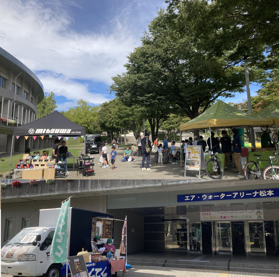松本市のエア・ウオーターアリーナで開催された「ファミリースポーツカーニバル」に出店させていただきました 子どもさんたちにとってはおそらく初めて体験するであろう様々な身体を使った遊びが無料で用意されており、楽しいイベントでした てくてくからはバターチキンカレーやクレープが人気でした |